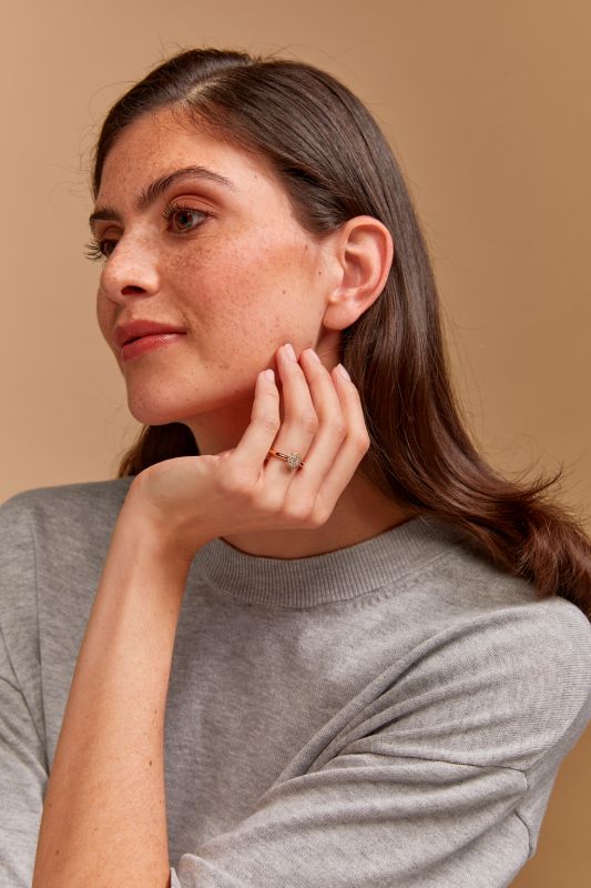 Stardust ring vanaf 2500,- met champagne diamant en €2350,- met zwarte saffier.