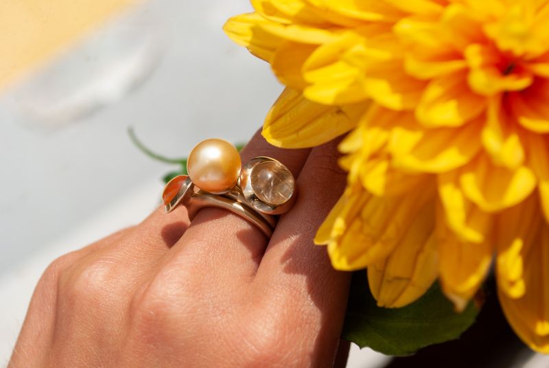 Geelgouden Trompet ZO ring met rutielkwarts