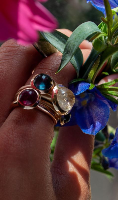 14 krt gouden Trompet ZO ringen met diverse edelstenen