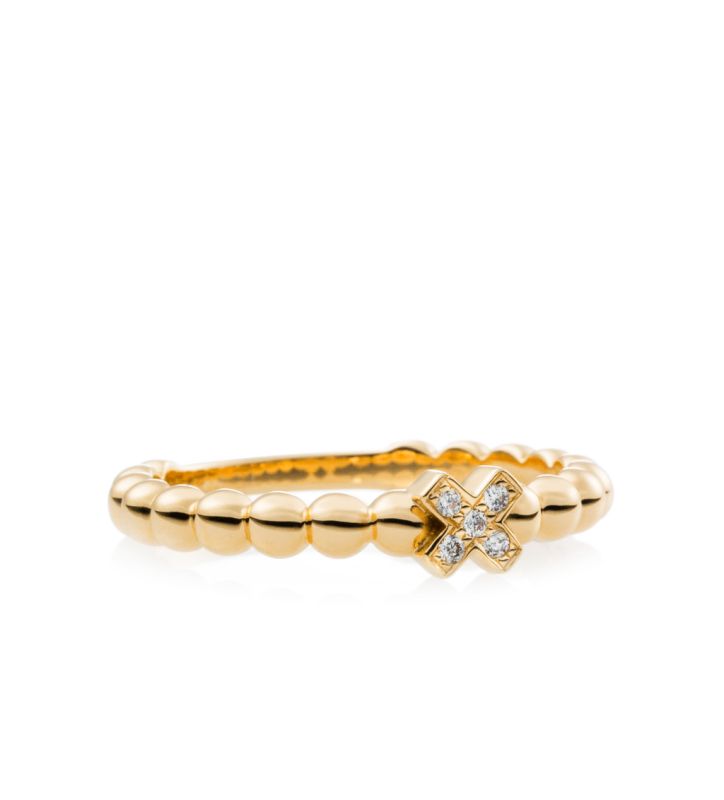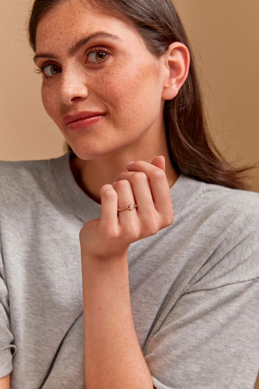 18 krt gouden ring met in kusje 0.04ct diamant pavé gezet