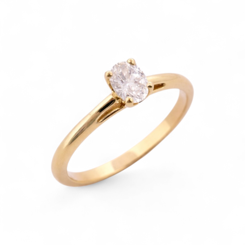Geelgouden solitair ring met SI1 D (Finest white+ Jager ) ovale 0.30 natuurlijke diamant