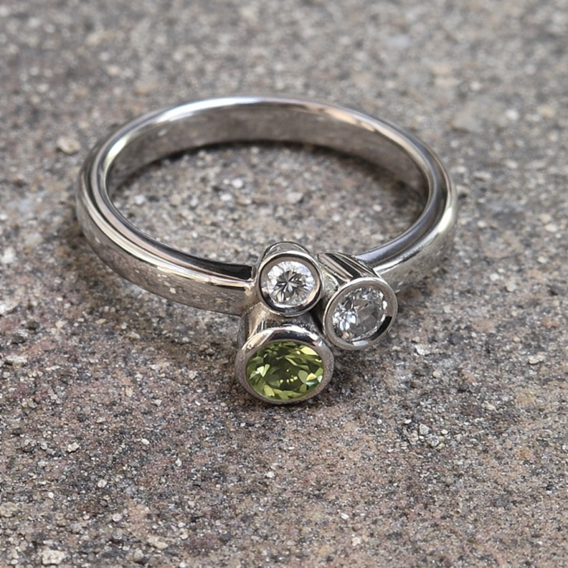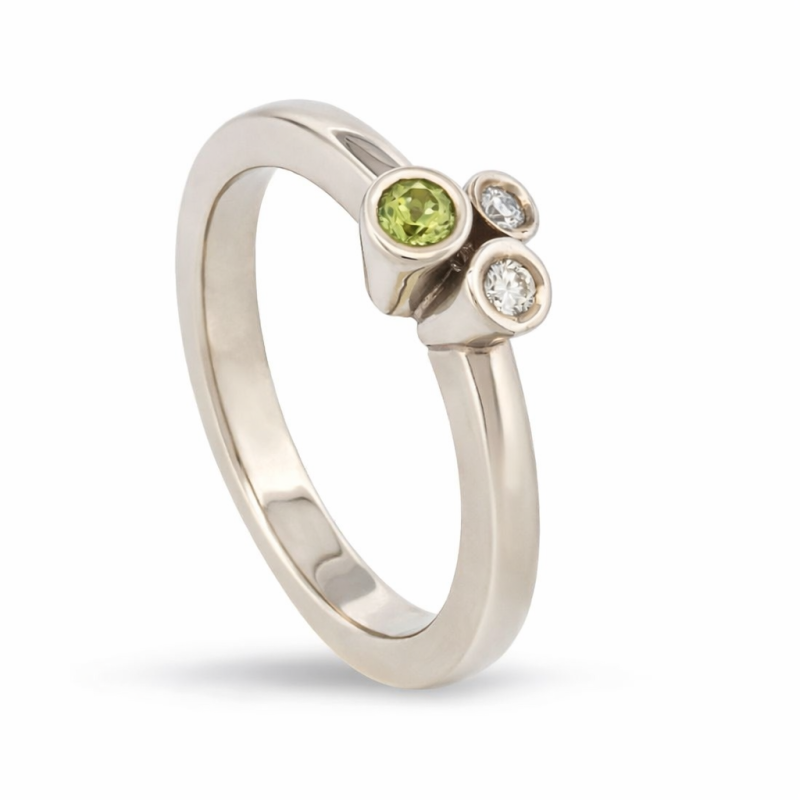 14krt witgouden kelkjes ring met diamant 0.02ct en 0.03ct H VS en peridot